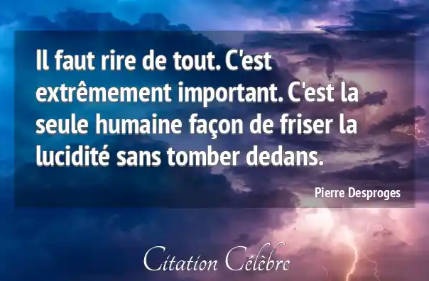 Il faut rire de tout. C'est extrêmement important. C'est la seule humaine façon de friser la lucidité sans tomber dedans.