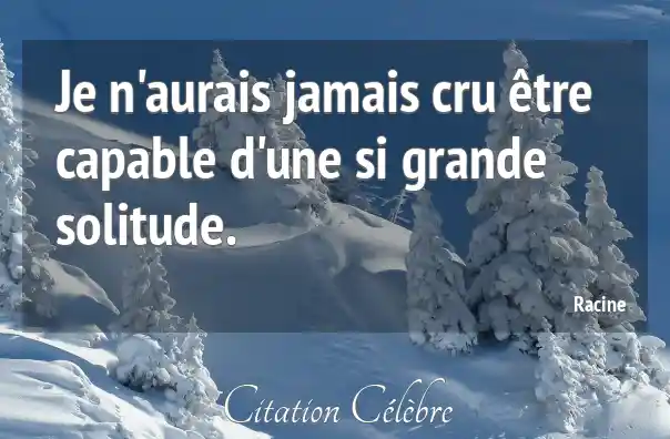 Je n'aurais jamais cru être capable d'une si grande solitude.