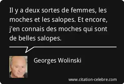 Il y a deux sortes de femmes, les moches et les salopes. Et encore, j'en connais des moches qui sont de belles salopes.