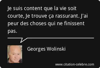 Je suis content que la vie soit courte, Je trouve ça rassurant. J'ai peur des choses qui ne finissent pas.