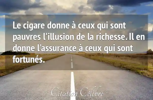 Le cigare donne à ceux qui sont pauvres l'illusion de la richesse. Il en donne l'assurance à ceux qui sont fortunés.