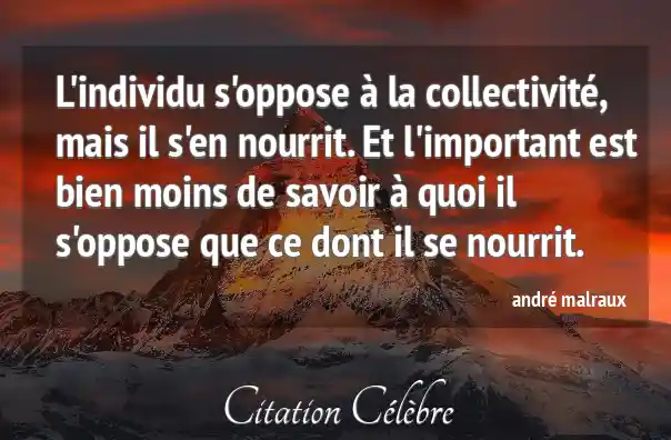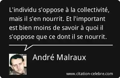 L'individu s'oppose à la collectivité, mais il s'en nourrit. Et l'important est bien moins de savoir à quoi il s'oppose que ce dont il se nourrit.