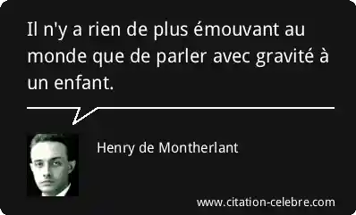 Il n'y a rien de plus émouvant au monde que de parler avec gravité à un enfant.