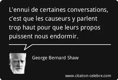 L'ennui de certaines conversations, c'est que les causeurs y parlent trop haut pour que leurs propos puissent nous endormir.