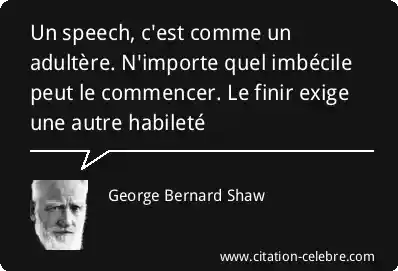 Un speech, c'est comme un adultère. N'importe quel imbécile peut le commencer. Le finir exige une autre habileté