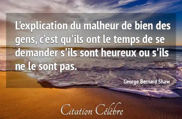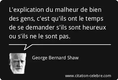 L'explication du malheur de bien des gens, c'est qu'ils ont le temps de se demander s'ils sont heureux ou s'ils ne le sont pas.