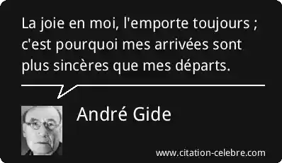 La joie en moi, l'emporte toujours ; c'est pourquoi mes arrivées sont plus sincères que mes départs.