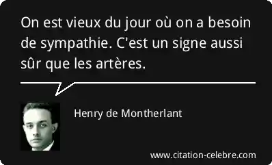 On est vieux du jour où on a besoin de sympathie. C'est un signe aussi sûr que les artères.
