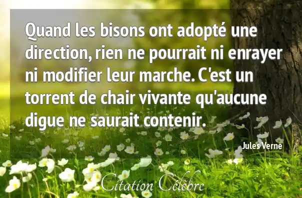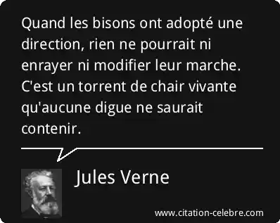 Quand les bisons ont adopté une direction, rien ne pourrait ni enrayer ni modifier leur marche. C'est un torrent de chair vivante qu'aucune digue ne saurait contenir.