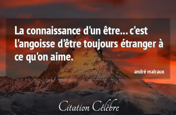 La connaissance d'un être... c'est l'angoisse d'être toujours étranger à ce qu'on aime.