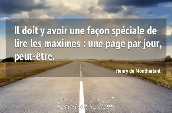 Il doit y avoir une façon spéciale de lire les maximes : une page par jour, peut-être.