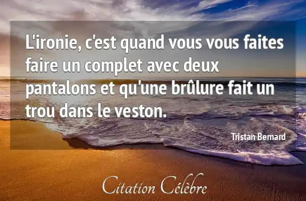 L'ironie, c'est quand vous vous faites faire un complet avec deux pantalons et qu'une brûlure fait un trou dans le veston.