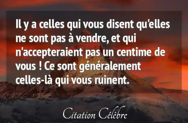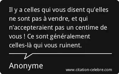 Il y a celles qui vous disent qu'elles ne sont pas à vendre, et qui n'accepteraient pas un centime de vous ! Ce sont généralement celles-là qui vous ruinent.
