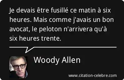 Je devais être fusillé ce matin à six heures. Mais comme j'avais un bon avocat, le peloton n'arrivera qu'à six heures trente.