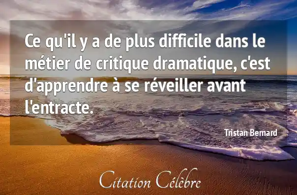 Ce qu'il y a de plus difficile dans le métier de critique dramatique, c'est d'apprendre à se réveiller avant l'entracte.