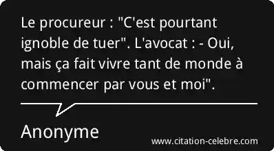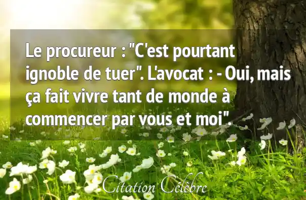 Le procureur : "C'est pourtant ignoble de tuer". L'avocat : - Oui, mais ça fait vivre tant de monde à commencer par vous et moi".