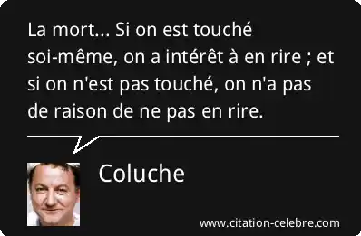 La mort... Si on est touché soi-même, on a intérêt à en rire ; et si on n'est pas touché, on n'a pas de raison de ne pas en rire.