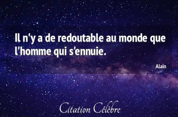 Il n'y a de redoutable au monde que l'homme qui s'ennuie.