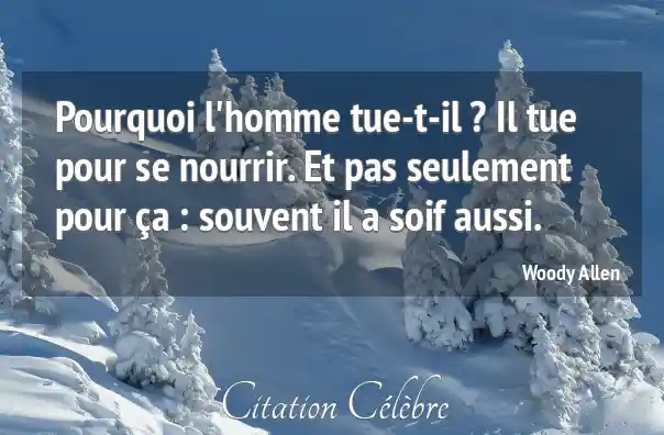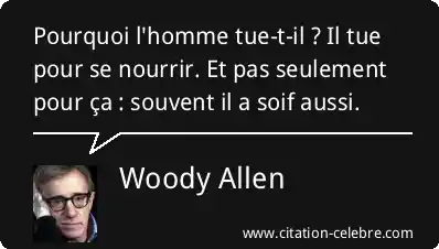 Pourquoi l'homme tue-t-il ? Il tue pour se nourrir. Et pas seulement pour ça : souvent il a soif aussi.