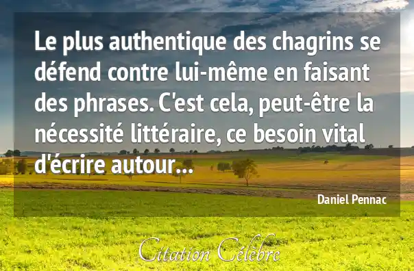 Le plus authentique des chagrins se défend contre lui-même en faisant des phrases. C'est cela, peut-être la nécessité littéraire, ce besoin vital d'écrire autour...