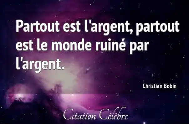 Partout est l'argent, partout est le monde ruiné par l'argent.