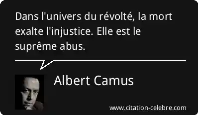 Dans l'univers du révolté, la mort exalte l'injustice. Elle est le suprême abus.