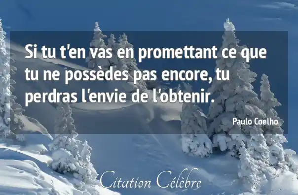 Si tu t'en vas en promettant ce que tu ne possèdes pas encore, tu perdras l'envie de l'obtenir.