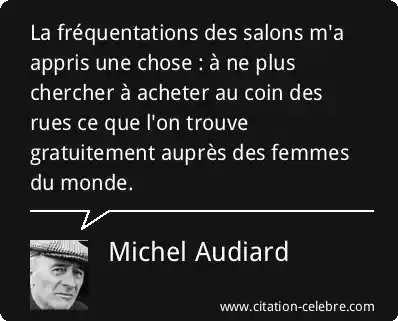 La fréquentations des salons m'a appris une chose : à ne plus chercher à acheter au coin des rues ce que l'on trouve gratuitement auprès des femmes du monde.