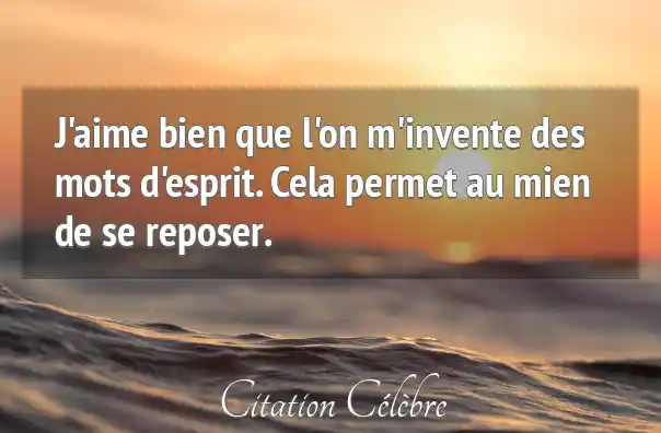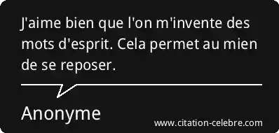 J'aime bien que l'on m'invente des mots d'esprit. Cela permet au mien de se reposer.