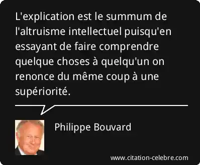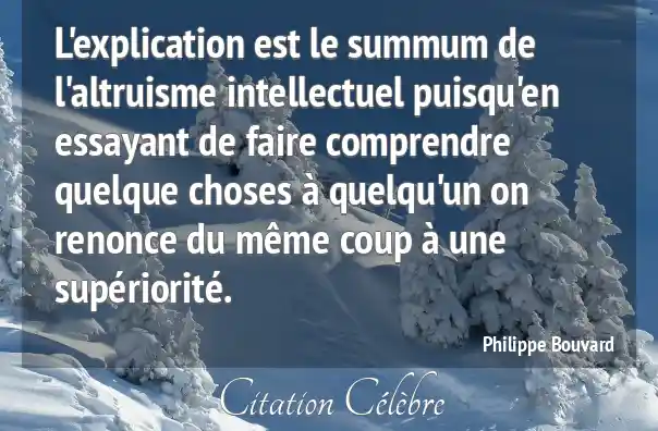 L'explication est le summum de l'altruisme intellectuel puisqu'en essayant de faire comprendre quelque choses à quelqu'un on renonce du même coup à une supériorité.