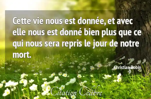 Cette vie nous est donnée, et avec elle nous est donné bien plus que ce qui nous sera repris le jour de notre mort.