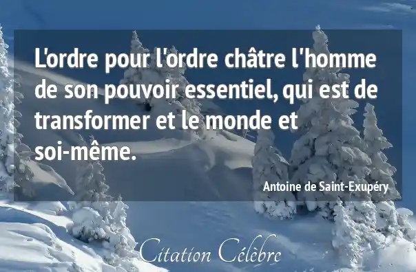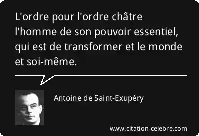 L'ordre pour l'ordre châtre l'homme de son pouvoir essentiel, qui est de transformer et le monde et soi-même.
