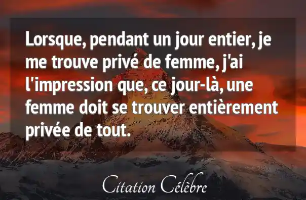 Lorsque, pendant un jour entier, je me trouve privé de femme, j'ai l'impression que, ce jour-là, une femme doit se trouver entièrement privée de tout.