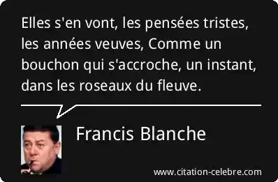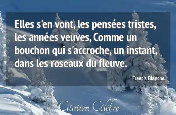 Elles s'en vont, les pensées tristes, les années veuves, Comme un bouchon qui s'accroche, un instant, dans les roseaux du fleuve.