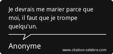 Je devrais me marier parce que moi, il faut que je trompe quelqu'un.