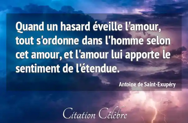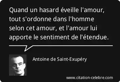 Quand un hasard éveille l'amour, tout s'ordonne dans l'homme selon cet amour, et l'amour lui apporte le sentiment de l'étendue.