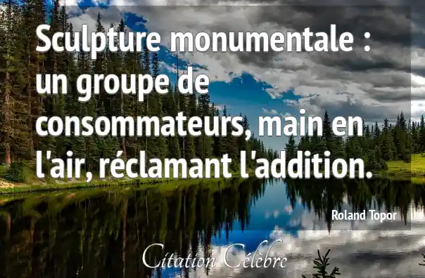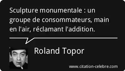 Sculpture monumentale : un groupe de consommateurs, main en l'air, réclamant l'addition.