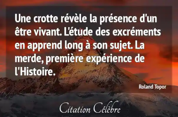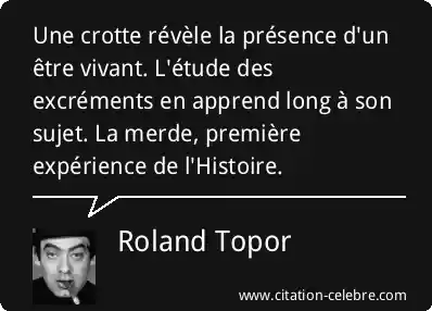 Une crotte révèle la présence d'un être vivant. L'étude des excréments en apprend long à son sujet. La merde, première expérience de l'Histoire.