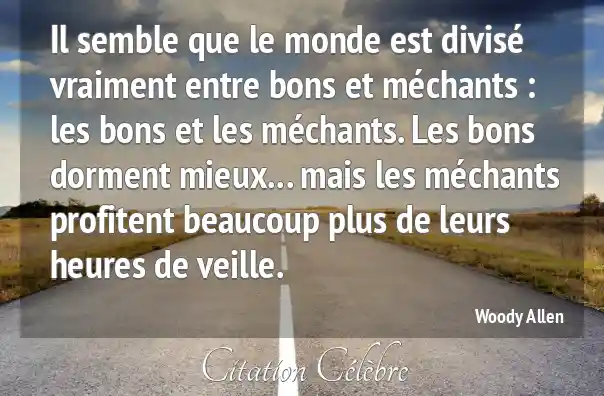 Il semble que le monde est divisé vraiment entre bons et méchants : les bons et les méchants. Les bons dorment mieux... mais les méchants profitent beaucoup plus de leurs heures de veille.