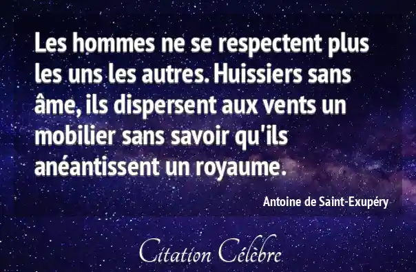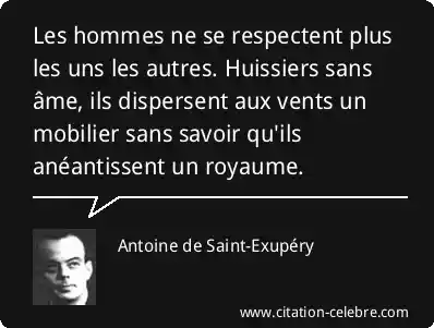 Les hommes ne se respectent plus les uns les autres. Huissiers sans âme, ils dispersent aux vents un mobilier sans savoir qu'ils anéantissent un royaume.