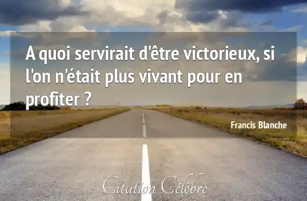 A quoi servirait d'être victorieux, si l'on n'était plus vivant pour en profiter ?
