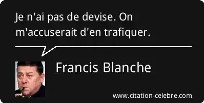 Je n'ai pas de devise. On m'accuserait d'en trafiquer.