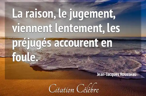 La raison, le jugement, viennent lentement, les préjugés accourent en foule.