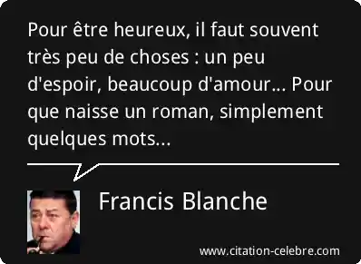 Pour être heureux, il faut souvent très peu de choses : un peu d'espoir, beaucoup d'amour... Pour que naisse un roman, simplement quelques mots...