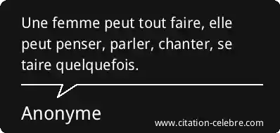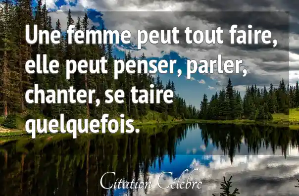Une femme peut tout faire, elle peut penser, parler, chanter, se taire quelquefois.