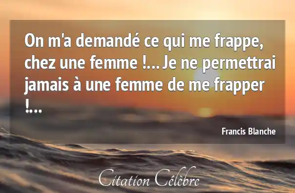 On m'a demandé ce qui me frappe, chez une femme !... Je ne permettrai jamais à une femme de me frapper !...