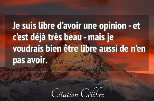 Je suis libre d'avoir une opinion - et c'est déjà très beau - mais je voudrais bien être libre aussi de n'en pas avoir.