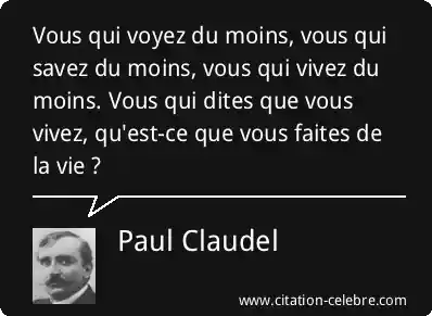 Vous qui voyez du moins, vous qui savez du moins, vous qui vivez du moins. Vous qui dites que vous vivez, qu'est-ce que vous faites de la vie ?