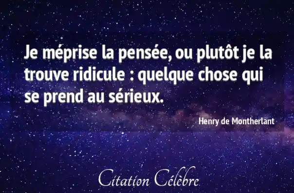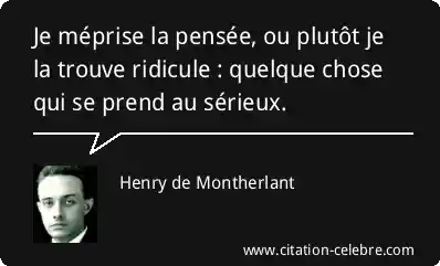 Je méprise la pensée, ou plutôt je la trouve ridicule : quelque chose qui se prend au sérieux.
