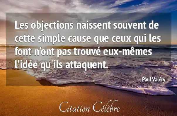 Les objections naissent souvent de cette simple cause que ceux qui les font n'ont pas trouvé eux-mêmes l'idée qu'ils attaquent.